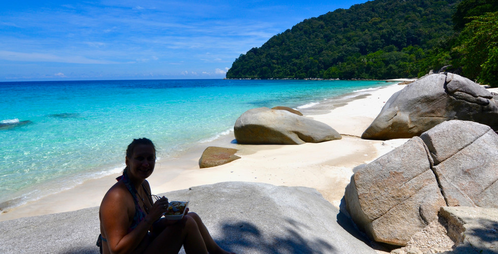 L'après midi, on change de coin, une autre plage mérite d'être vue. Il faut marcher 20min dans la jungle pour l'atteindre, pas de problème pour les aventuriers que nous sommes devenus à #BUKIT_LAWANG. Nos reflexes de survie ne nous ont pas quitté. On avance d'un pas sûr, en suivant notre instinct et le chemin extrêmement bien tracé, qui longe la côte…