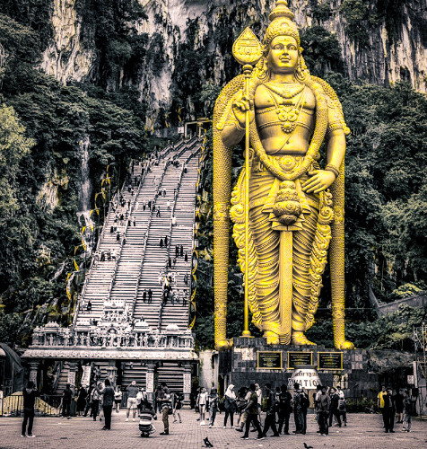 On décolle un peu plus tôt car il va nous falloir un peu de temps pour rejoindre "Batu Cave". Quelques monorails et trains plus tard, nous y arrivons. La première cave est superbe, l'histoire est belle et la déco bien entretenue.